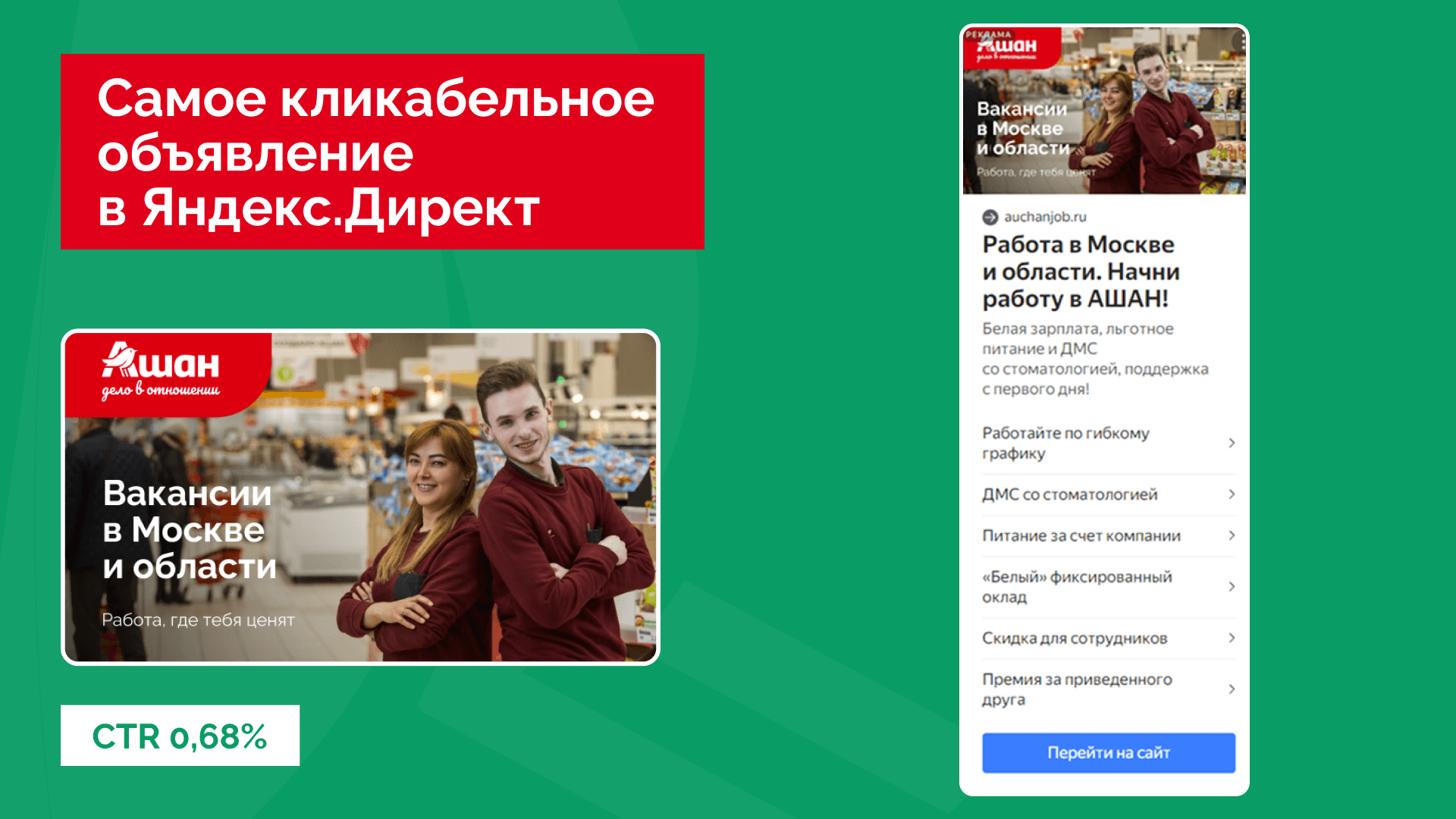 Основная задача заключалась в увеличении количества откликов с работных сайтов, особенно в Москве, где высокая конкуренция за кадры. Мы работали с аудиторией, которая ищет не просто место для трудоустройства, а лучшие условия: высокую зарплату, социальные гарантии и хорошую корпоративную культуру.