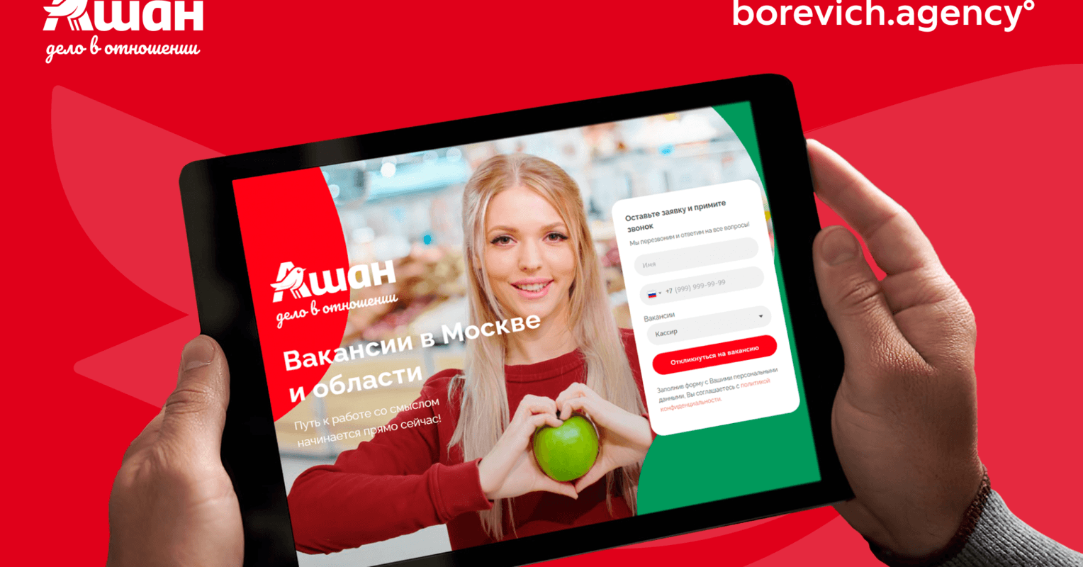 Задача посадочной страницы заключалась в том, чтобы отразить ценности компании и привлечь кандидатов, ориентированных на карьерный рост. Акцент был сделан на том, что АШАН — это не просто бизнес, а компания с душой, где важна команда, корпоративная культура и возможности для развития. Это помогло выделить компанию среди конкурентов и привлечь более мотивированных сотрудников.