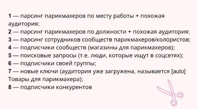 В процессе работы объединили аудитории 1, 2 и 4 и оставили 6 и 8, как самые эффективные с точки зрения получения заявок.