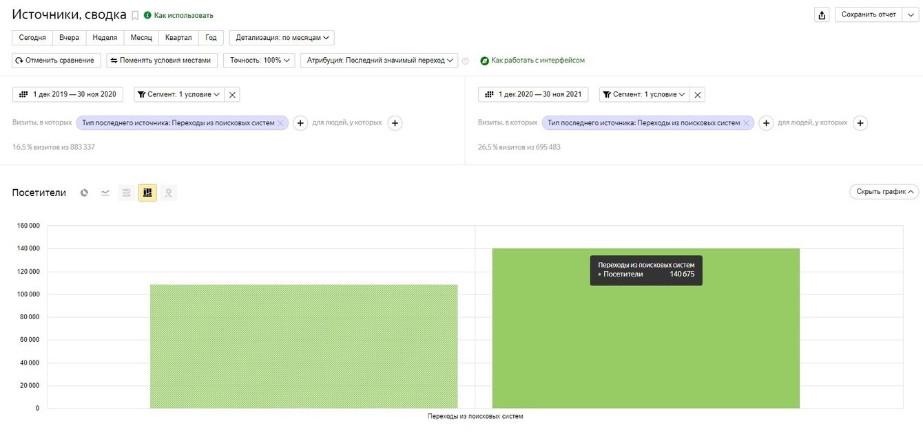 Рост трафика из поисковых систем на 32 000 тыс. пользователей по сравнению с прошлым годом