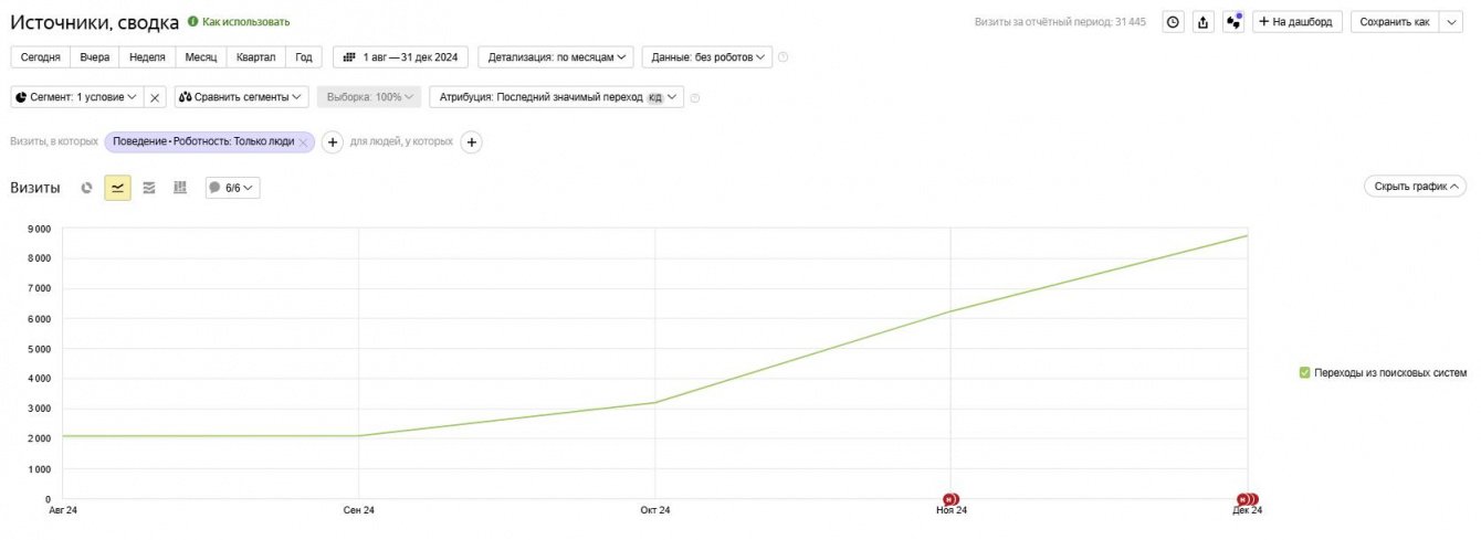 Рост по количеству посещений (без роботов) на 321,5% за 5 месяцев;