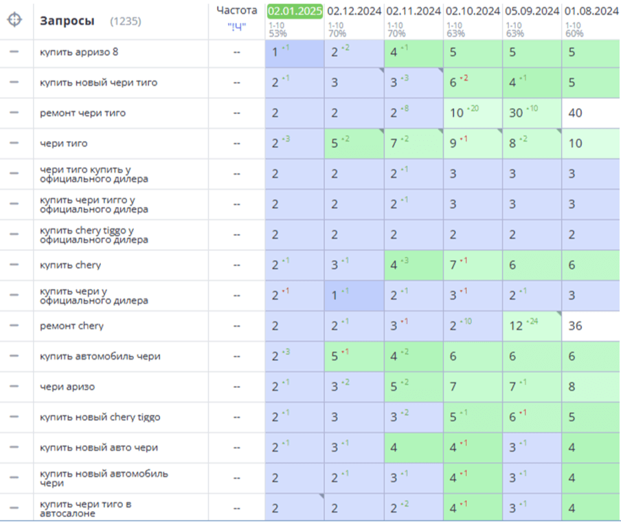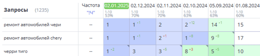 ○ Значительное улучшение видимости сайта по ключевым запросам, с уверенным выходом на топовые позиции в регионе.