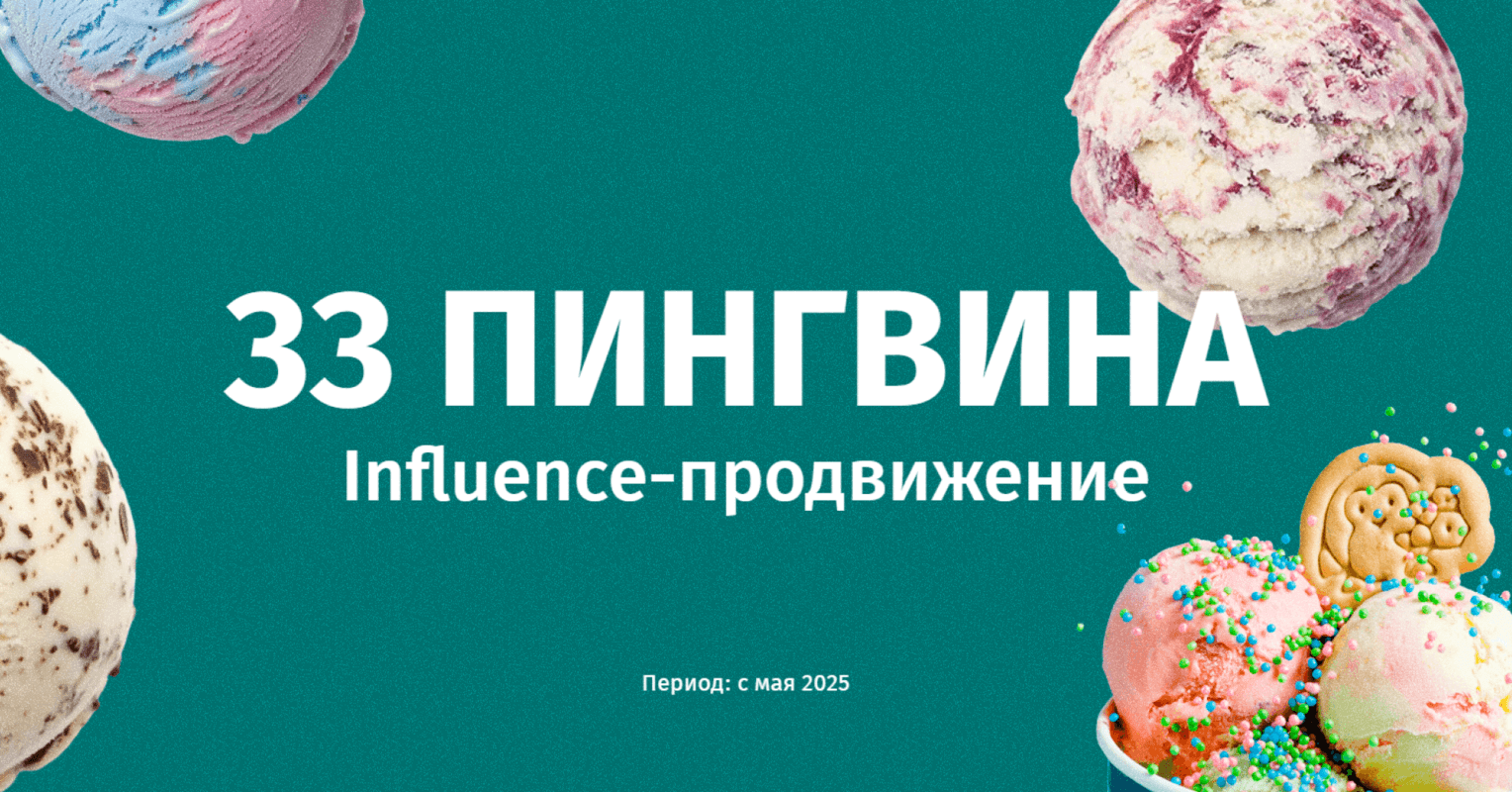 «33 пингвина» — международная сеть кафе-мороженого и десертов родом из Сибири. Клиент пришел с запросом на инфлюенс-маркетинг для бренда.