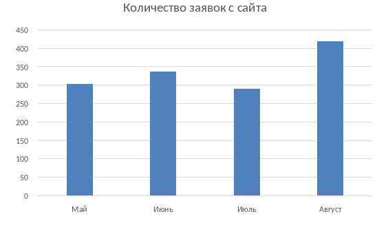 В среднем в мае, июне и июле мы получали по 311 заявок в месяц, около 10 заявок в день. В августе мы смогли улучшить этот показатель до 420 заявок в месяц, 13-14 заявок в день. Т.е. всего за 2 недели работы квиз-опроса на сайте месячное количество заявок по сравнению с предыдущим периодом увеличилось на 35%.