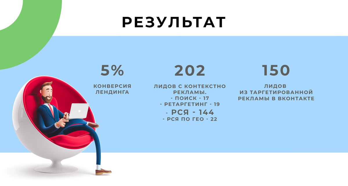 Грамотные настройка, работающие посты, рабочие заявки, низкая стоимость лида, адекватная стоимость ведения рекламной кампании и стабильный результат.