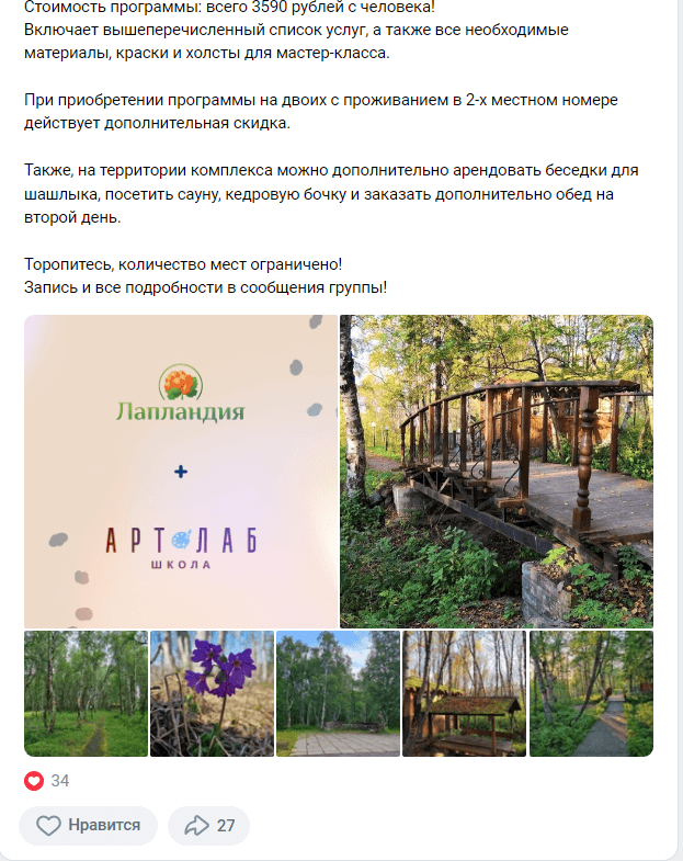 Коллаборация санаторно-гостиничного комплекса "Лапландия" и школы рисования "Артлаб Мурманск" была очень продуктивной. Помимо пришедших подписчиков за счет взаимной рекламы, дополнительно с рекламной кампании было получено: