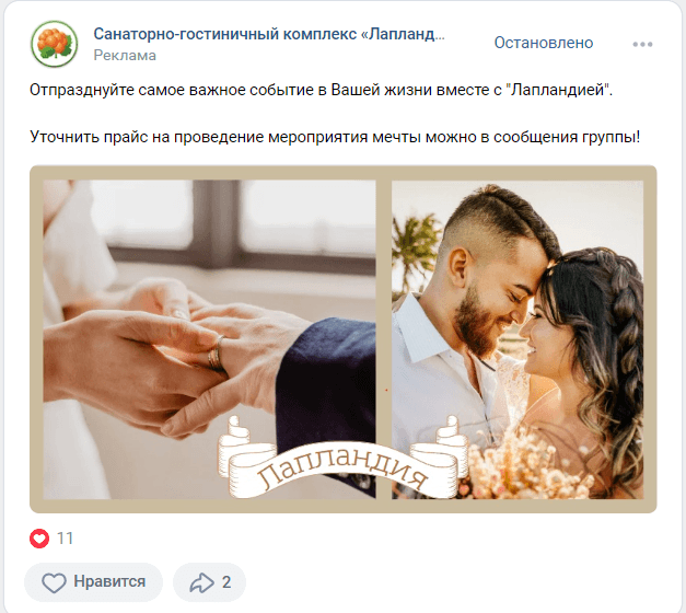 Клиент - санаторно-гостиничный комплекс в Мурманской обл., в услуги которого входят спа-процедуры, а также проведение свадеб и корпоративов.