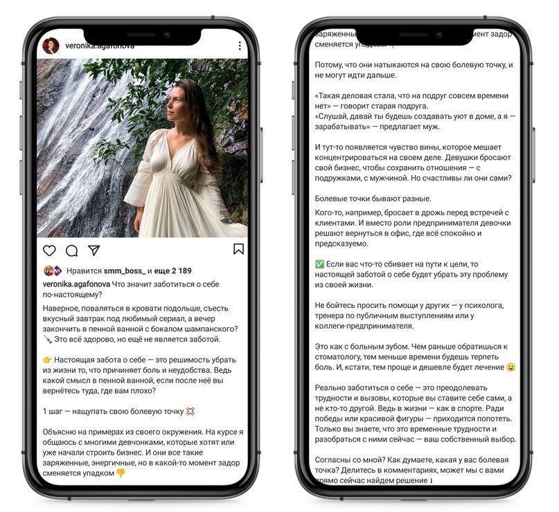 Перед началом работы над текстами мы изучили большую часть видео-контента Вероники, чтобы перенять её манеру подачи материала для написания постов, статей и сторис, так они будут восприниматься более естественно, как будто их пишет сама Вероника.