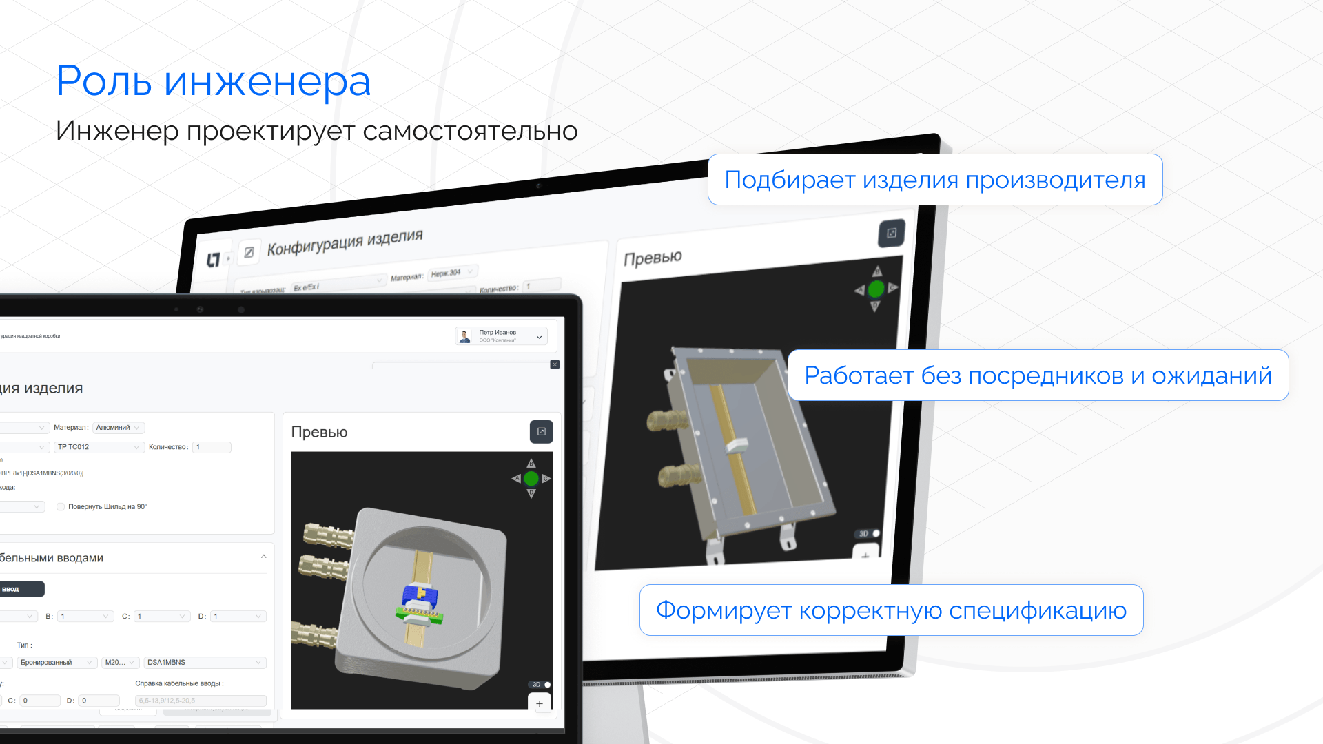Инженеры проектных институтов и B2B-заказчики не имели прямого доступа к инструментам проектирования производителя. Чтобы подобрать изделие, им приходилось связываться с менеджерами по телефону или почте, передавать параметры, ждать обратной связи, вносить правки и проходить несколько циклов согласований. Но благодаря проекту не только увеличилась скорость работы инженеров и менеджеров, но и в целом изменилась цепочка взаимодействия. Инженер получает возможность самостоятельно работать с инструментами проектирования в удобное для него время, а менеджер видеть уже сформированный подбор, готовый к дальнейшей коммерческой и производственной обработке.