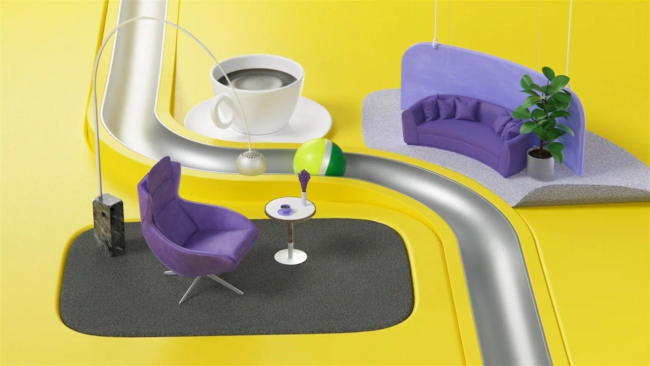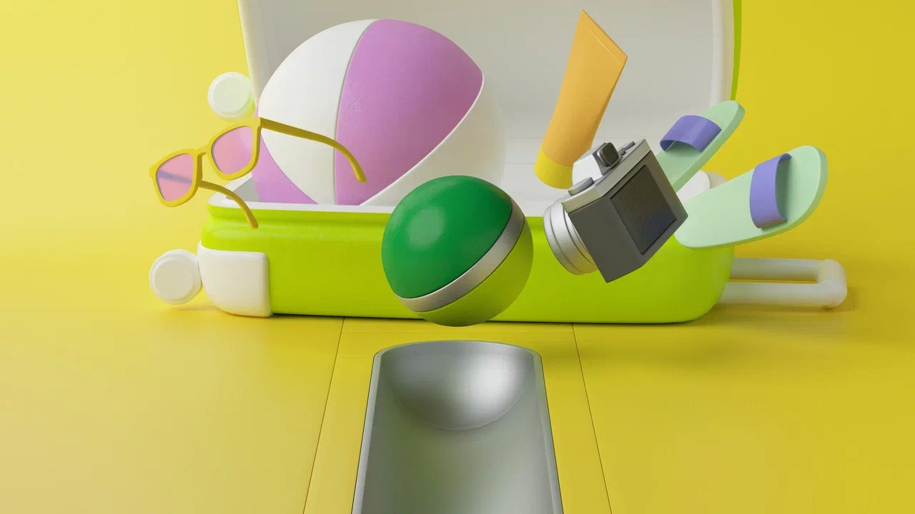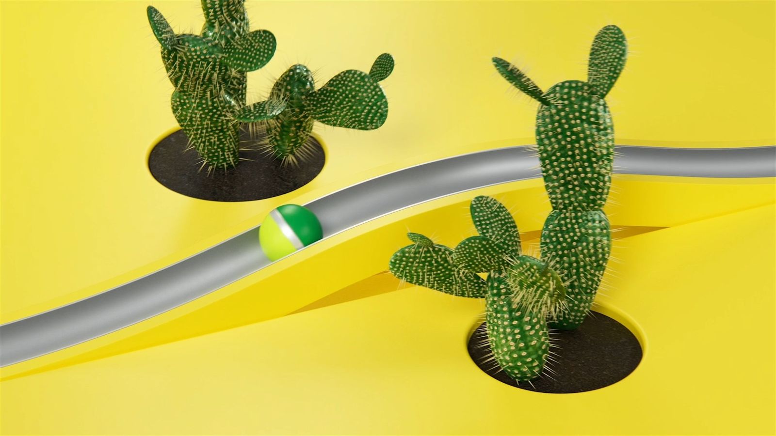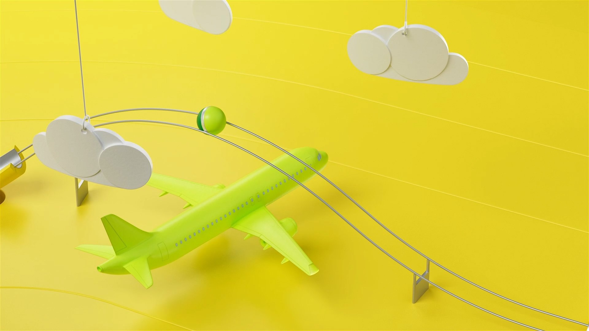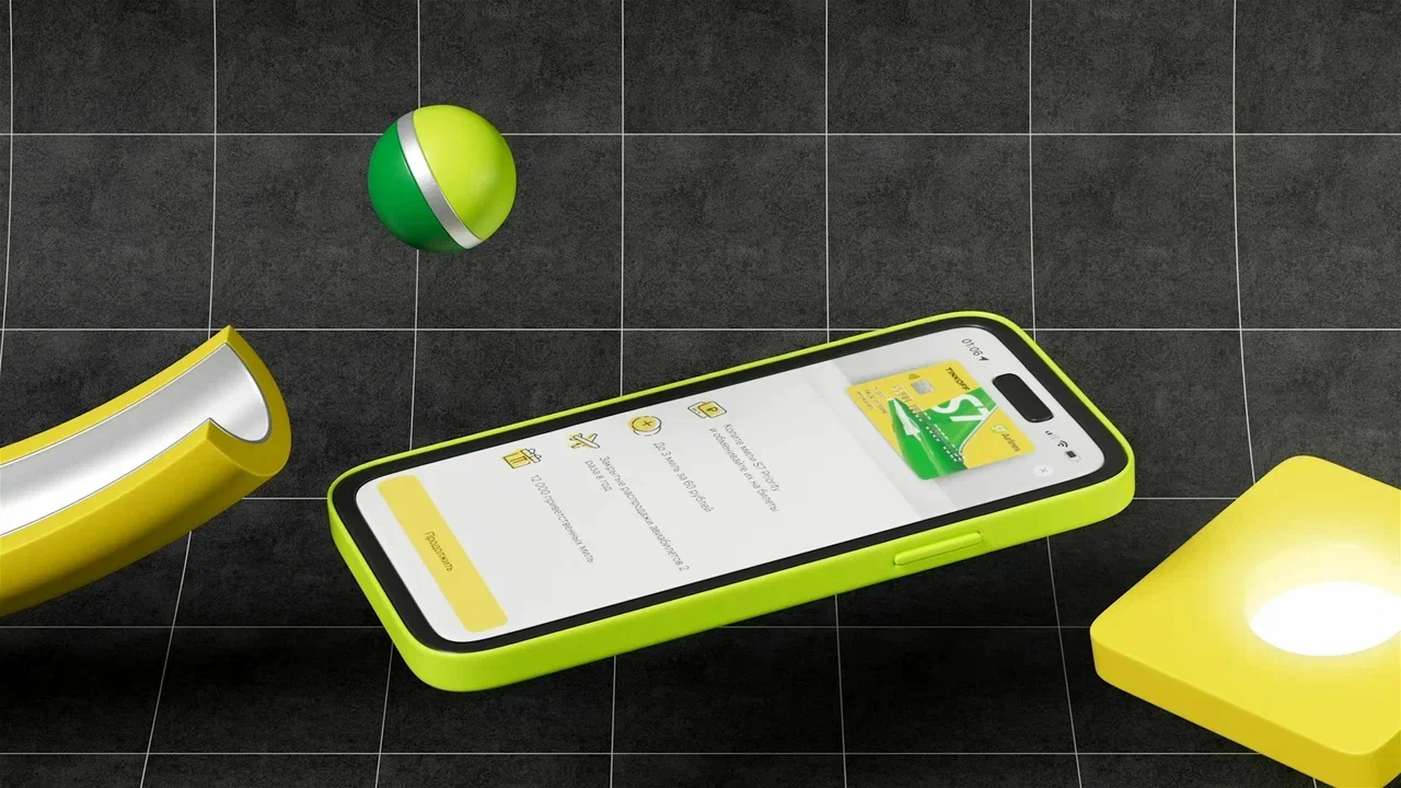 Мы выбрали минималистичный 3D-дизайн с мягкой геометрией и «солнечной» палитрой: жёлтый цвет Тинькофф и зелёный S7 Airlines сразу вызывают ассоциации с путешествиями и комфортом. Жёлтая поверхность и металлический желоб создают ощущение идеального, отлаженного маршрута. Зелёный шарик выступает не просто элементом, а мини-персонажем, за плавным движением которого хочется наблюдать, как за маленьким фильмом о выгодах. Вместо буквального показа всех функций карты мы использовали взаимодействие персонажа с окружением, чтобы зритель без слов считывал: покупаешь — получаешь мили, двигаешься вперёд — получаешь выгоду.