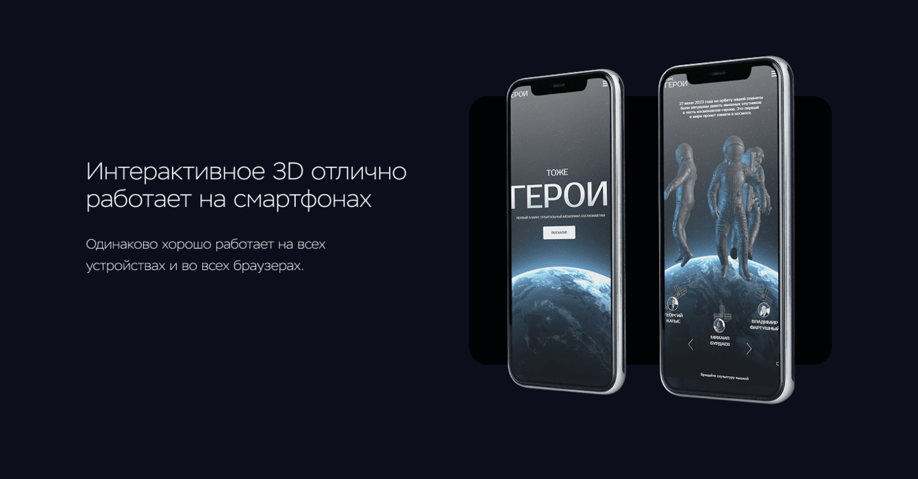 В результате был создан выразительный цифровой мемориал, объединивший искусство, технологии и историю. Интерактивная скульптура стала центральной точкой проекта — эмоциональным и визуальным ядром, вокруг которого выстроена вся коммуникация. Пользователь не просто читает о героях, а буквально взаимодействует с пространством: наблюдает Землю с орбиты, находит именные спутники и переходит к историям конкретных космонавтов.