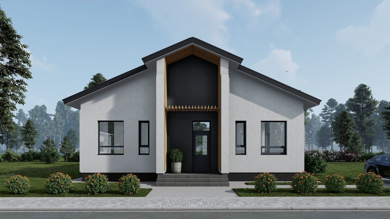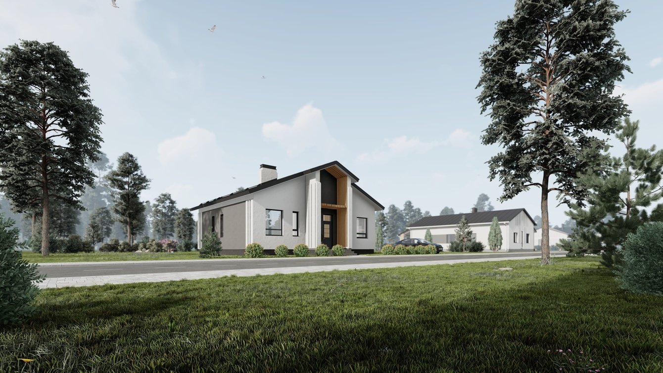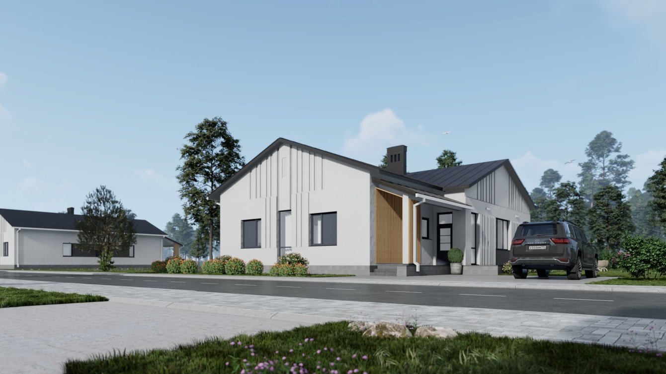 При разработке визуальной архитектуры необходимо было соблюсти замечания заказчика о стилистике домов ориентируясь на потенциального покупателя.