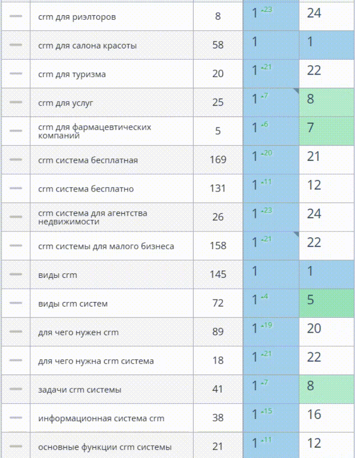 — Расширен охват по ключам: crm для... [ниша], что обеспечило рост в тематике.