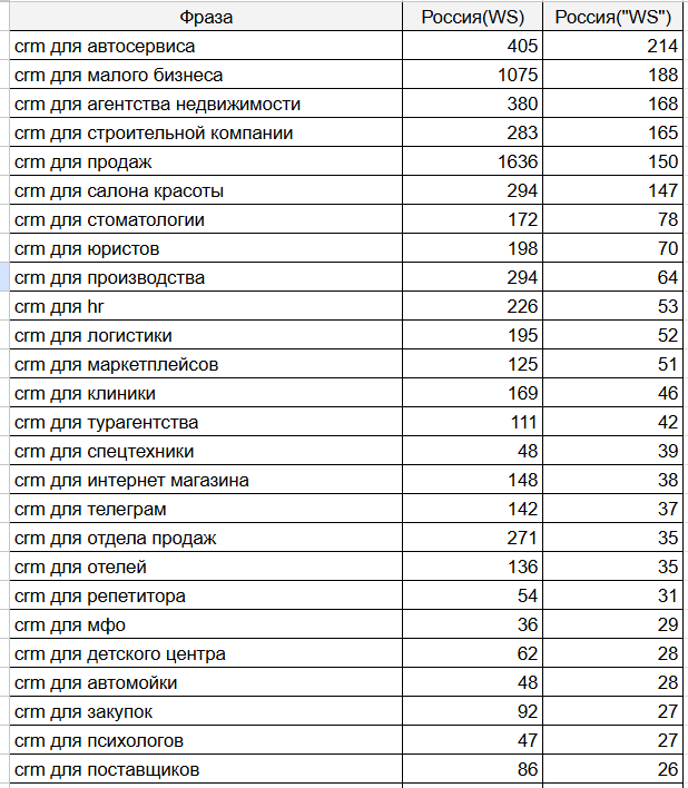 — Не было посадочных страниц под важные коммерческие запросы «CRM для…»: автосервисов, риелторов, клиник, логистики, интернет-магазинов и т.д.