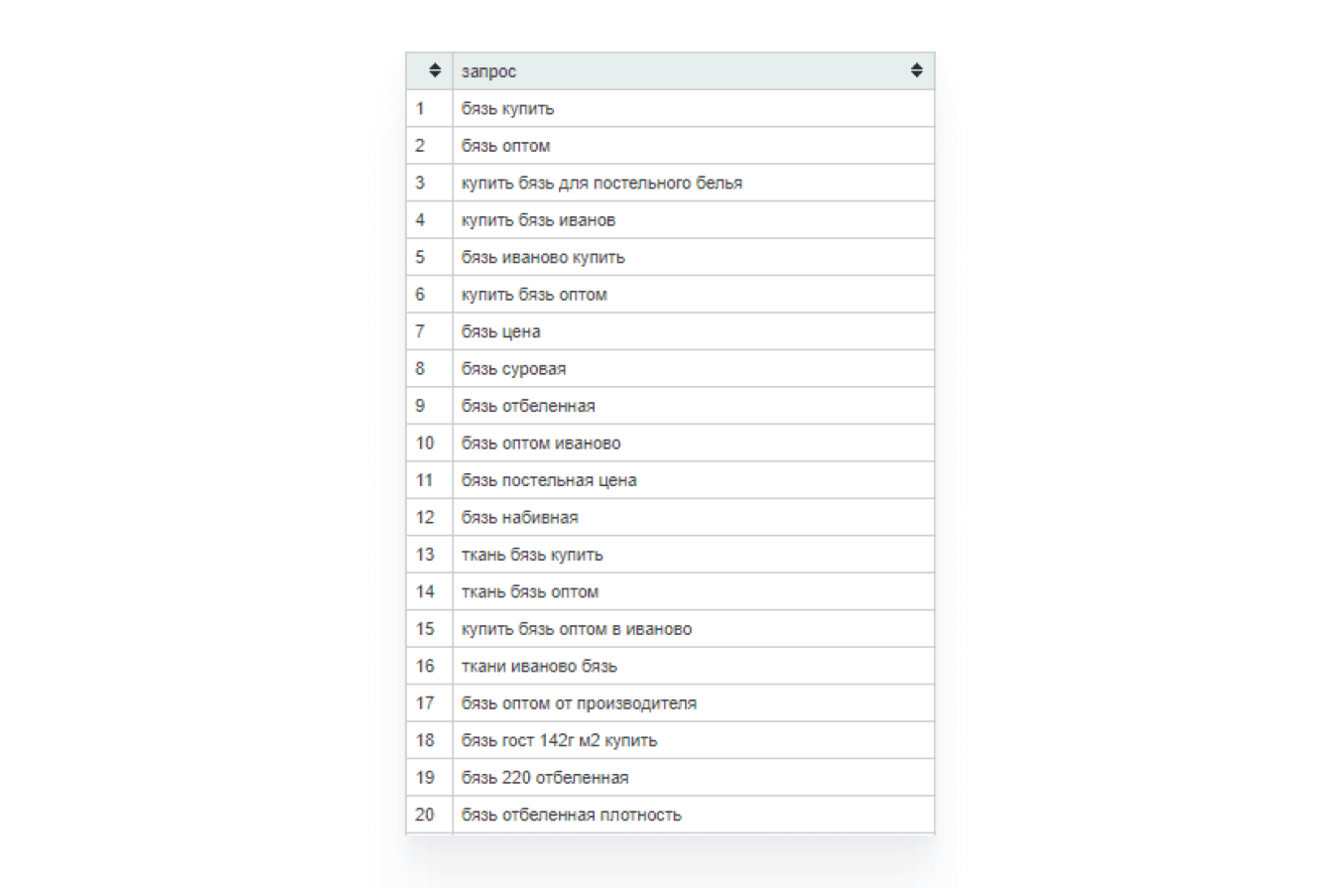 Изначально мы проработали регион Иваново и область + геонезависимые запросы, содержащие «Иваново».
