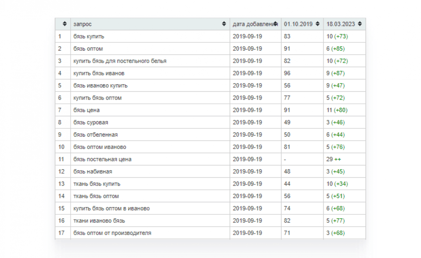 3. Большая часть запросов в топ-10 (хоть это и косвенный показатель и нужен нам для внутренней работы):