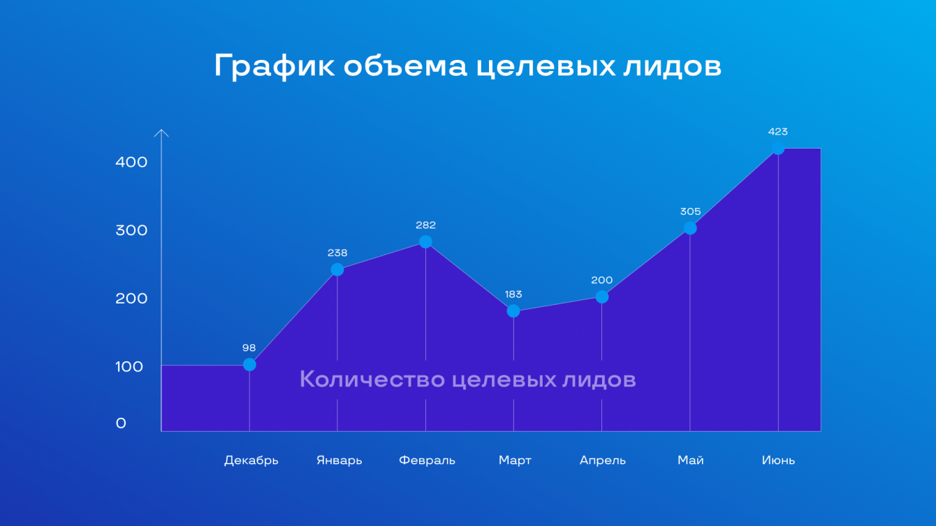 График количества квалифицированных лидов по месяцам с декабря 2022 года по июнь 2023: