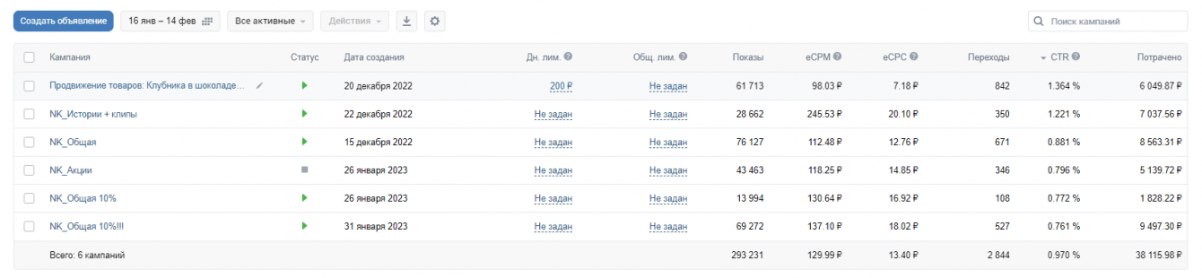 2 февраля создали отдельную кампанию и запустили рекламу с информацией о предзаказах. В период со 2 по 14 февраля с этой кампании по статистике кабинета ВКонтакте получили 30 заявок по 151 руб.