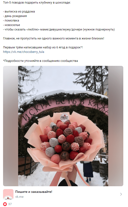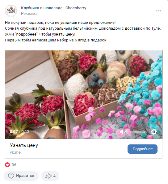 После неудачного запуска мы сменили стратегию с прямого лидгена на нативный пост. Мы использовали: