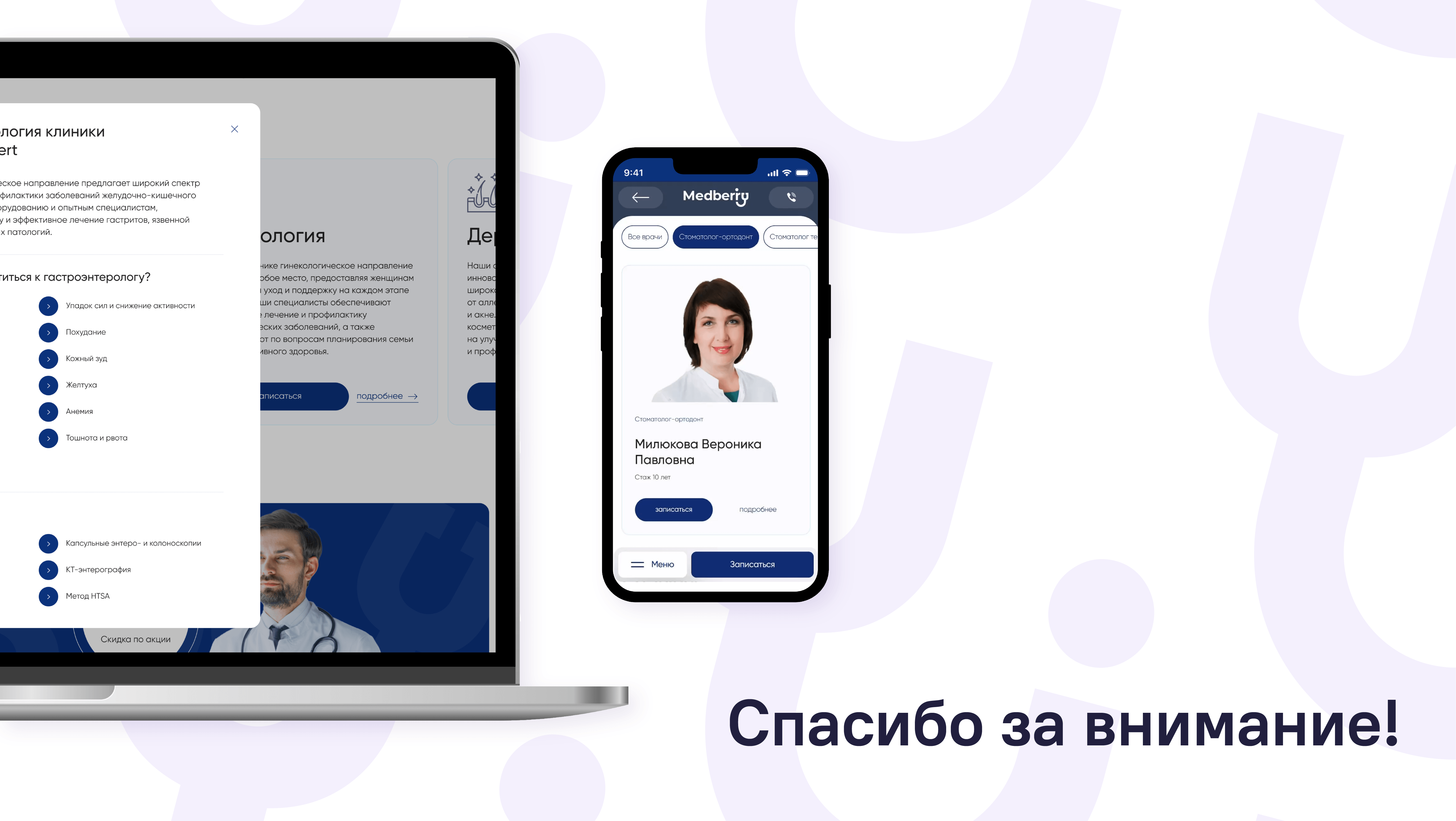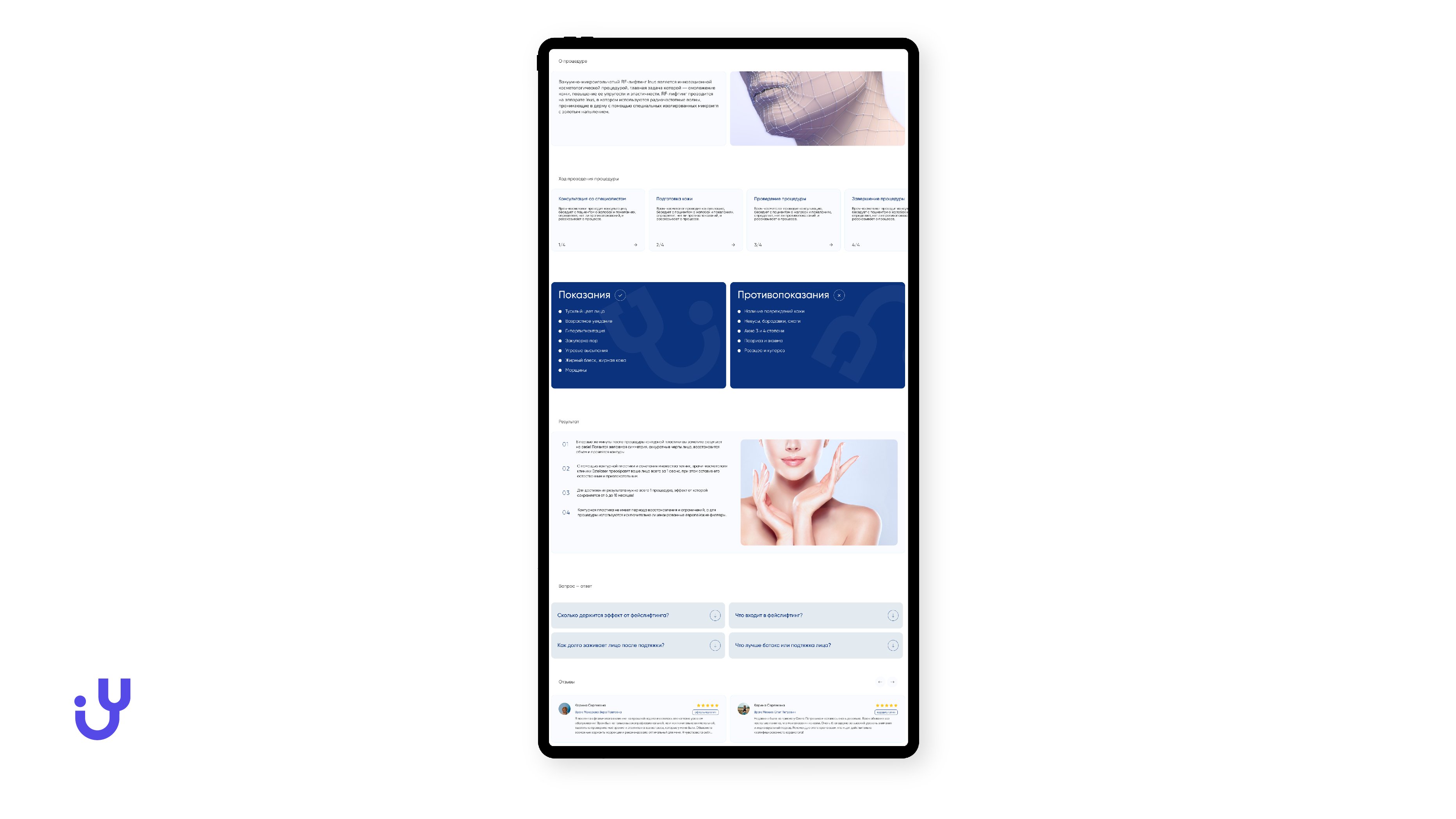 Шаблон включает функциональные формы с CTA-кнопками и кликабельные элементы (например, номера телефонов и ссылки на мессенджеры), которые позволяют быстро связаться с клиникой или записаться на приём, что делает процесс более удобным и быстрым.