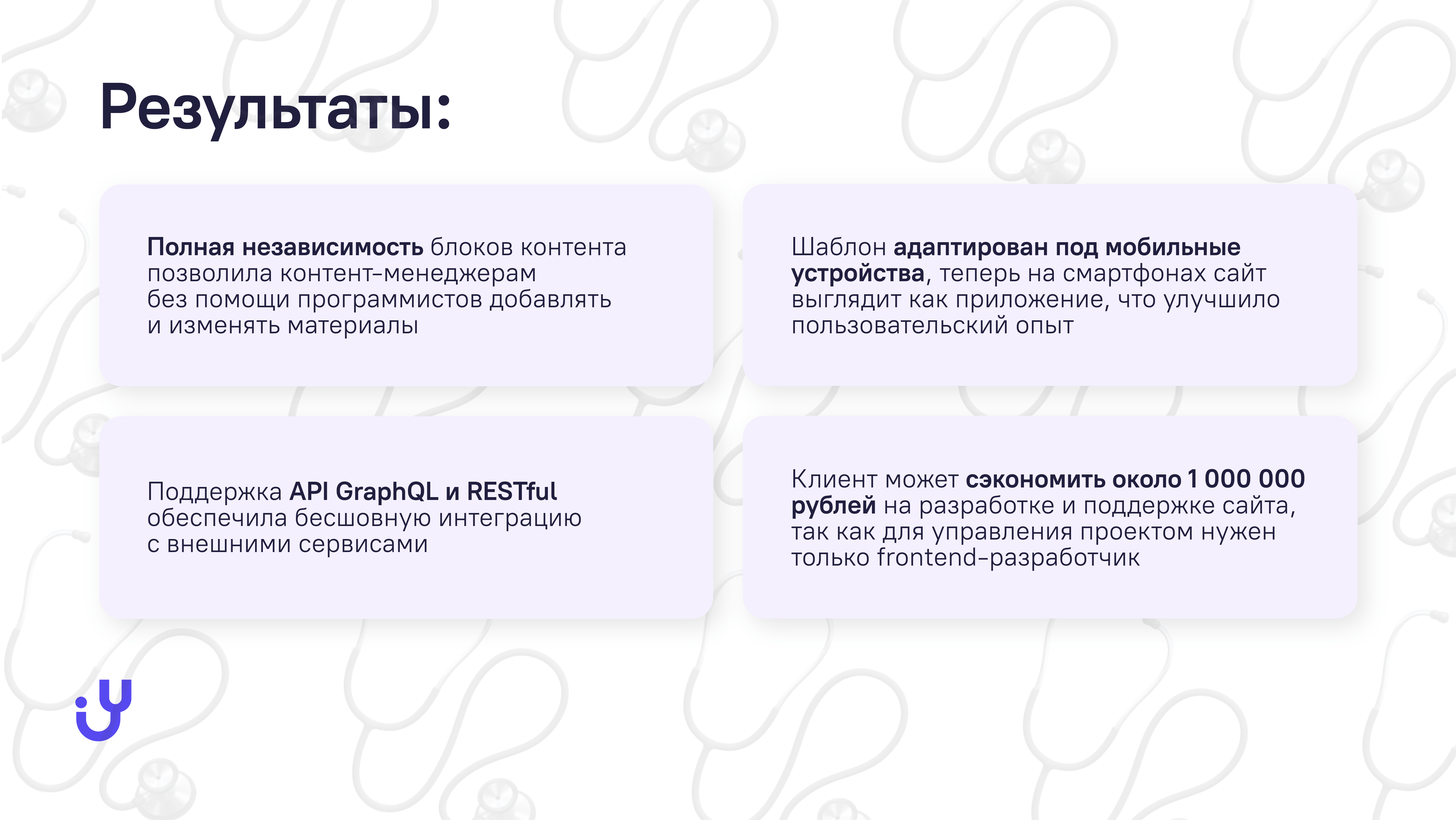Наша задача заключалась в разработке масштабируемого и независимого шаблона сайта для медицинских организаций.