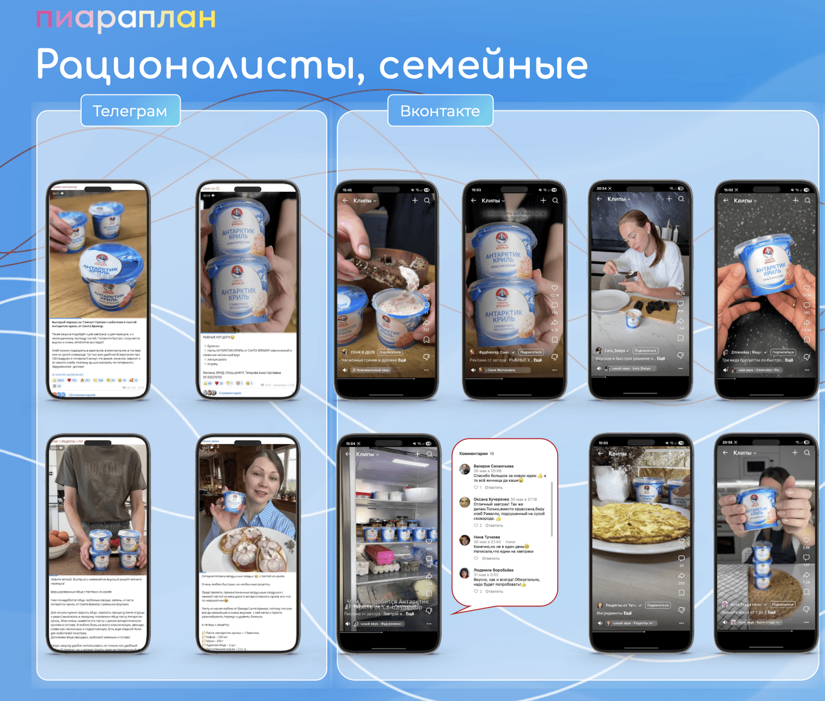 Стратегия включала подбор инфлюенсеров, релевантных УТП продукта, с фокусом на темы семейных ценностей, кулинарии и лайфстайла.