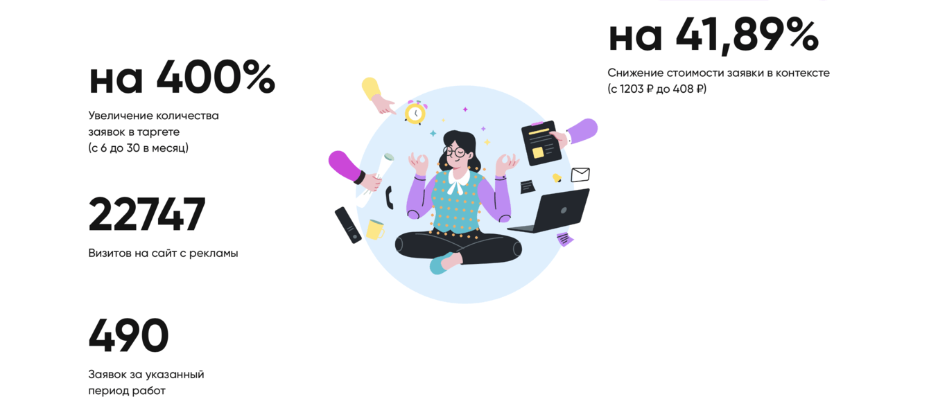 на 42,5% Увеличение количества заявок в контексте (с 87 до 124 в месяц)