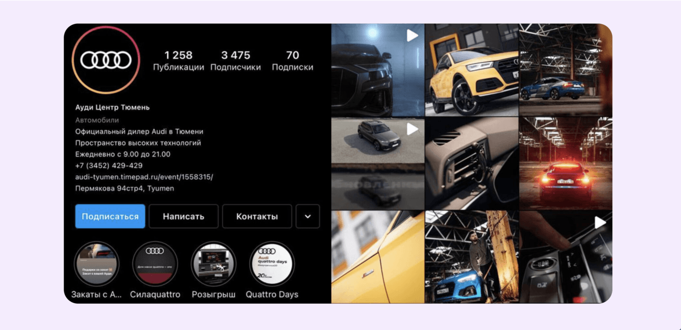 Для всех вариантов рекламы мы использовали фото, видео и анимации, созданные нашим агентством для социальных сетей компании, что позволило увеличить конверсию – каждый понимал: это реклама именно Тюменского автосалона и желанное авто на картинке точно находится в наличии в Тюмени.