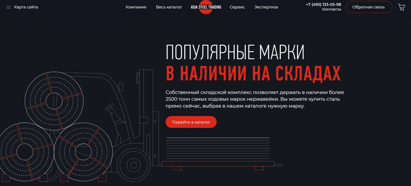 Компания «Азия Стил Трейдинг» — импортер нержавеющей стали. Входит в ТОП 5 поставщиков по холоднокатаному прокату в России как по объему импорта, так и по объему продаж. Специализируется на оптовых поставках нержавеющей стали (марок, которые не производятся в России) на сотни производственных компаний. Кроме этого активно работает с посредниками по продаже металла.