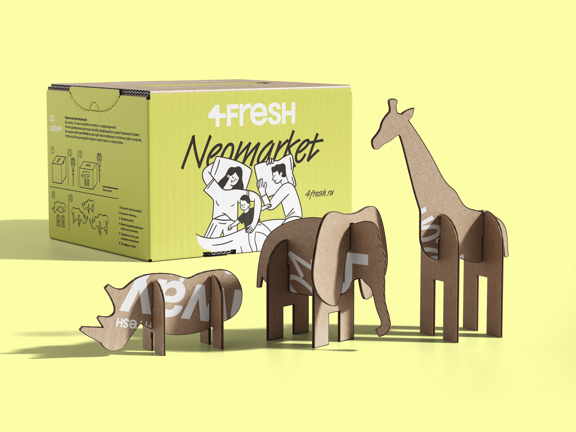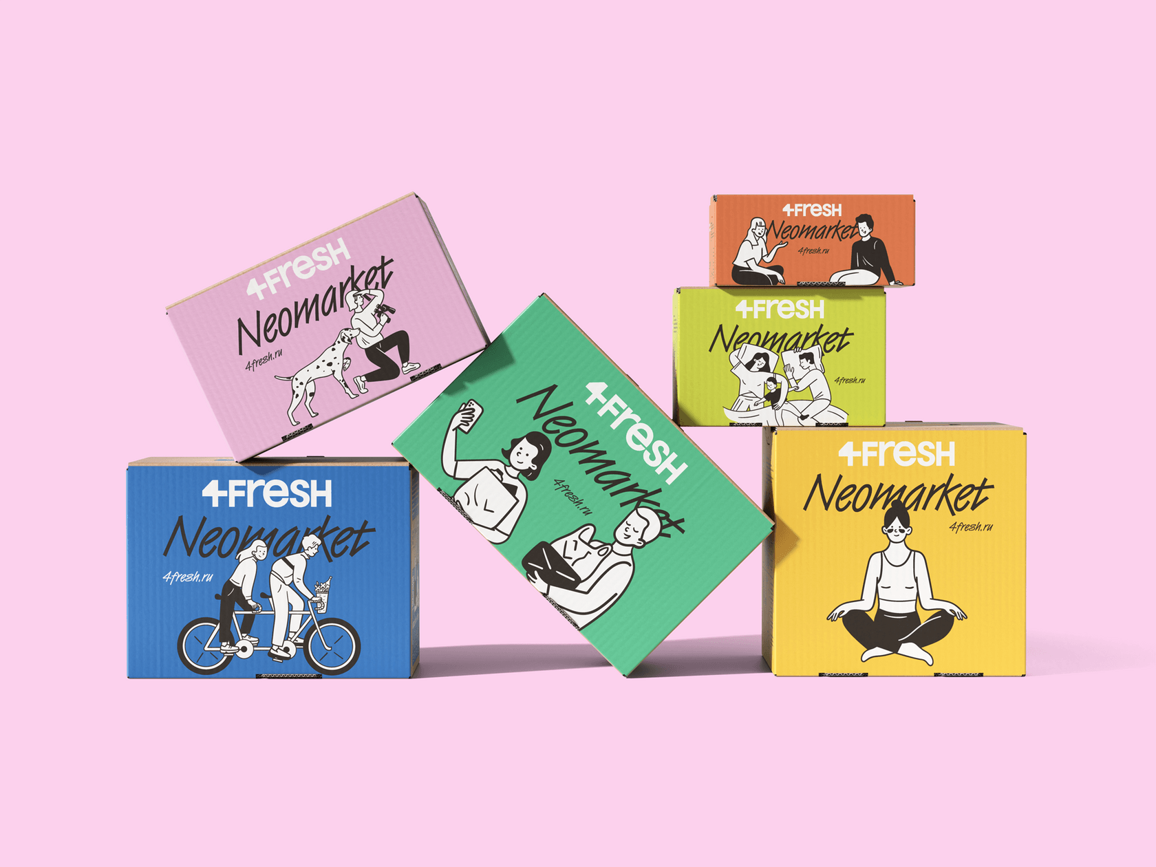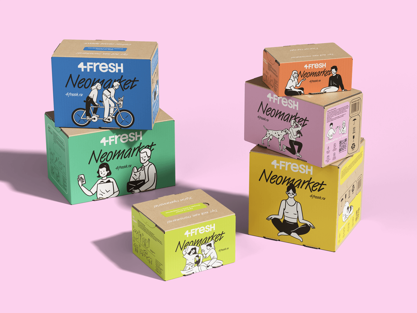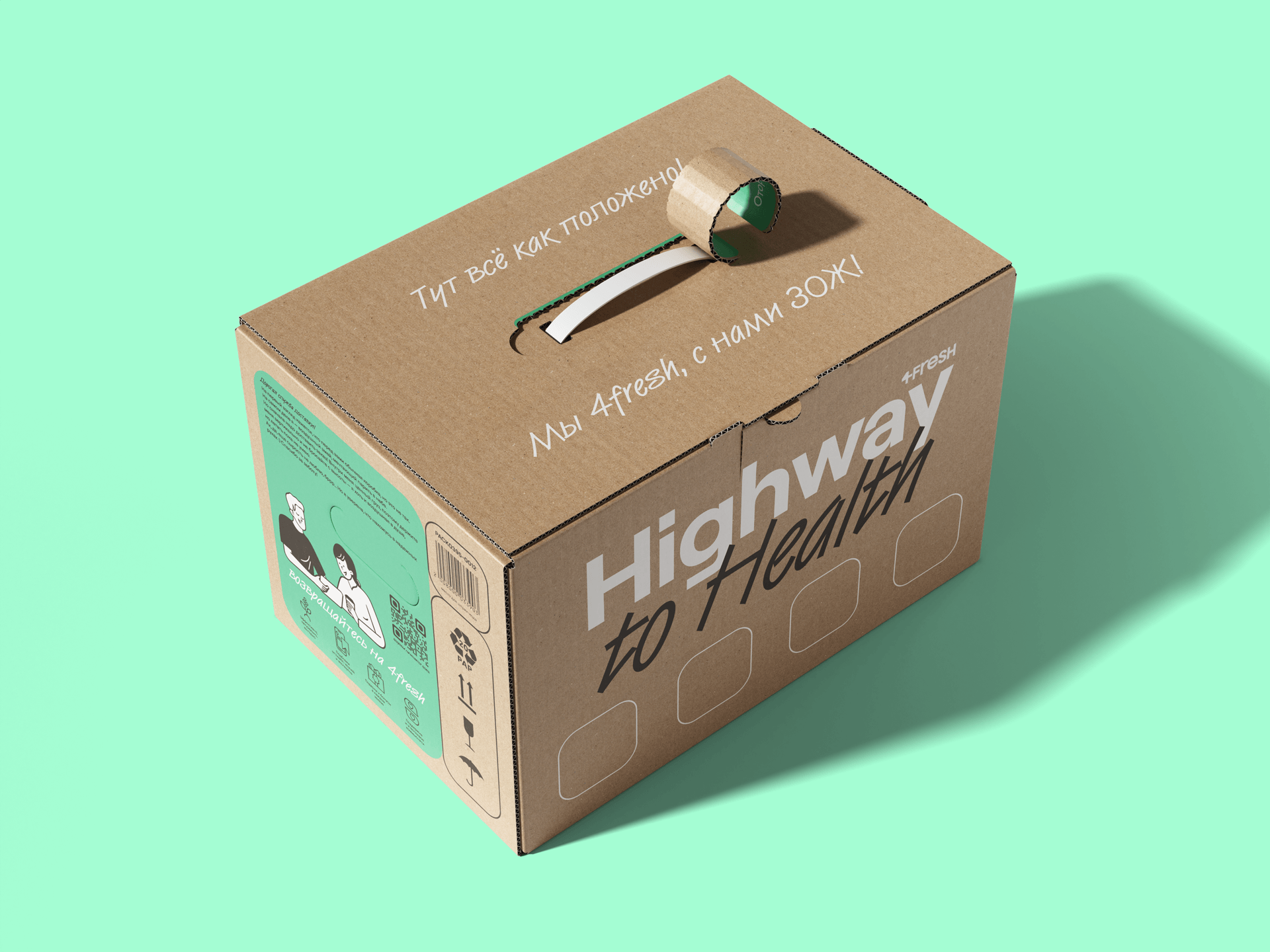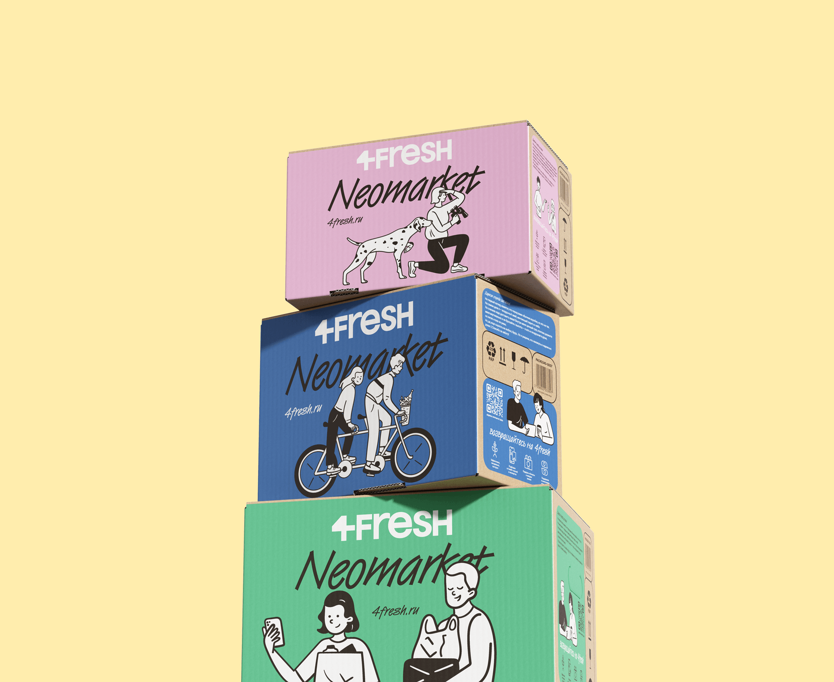 Для интернет-магазина 4fresh.ru упаковка всегда была не просто средством доставки, но и способом коммуникации с покупателями. В рамках ребрендинга и на основе концепции агентства F61 мы создали коробки, которые удобно носить, приятно получать и можно использовать повторно.