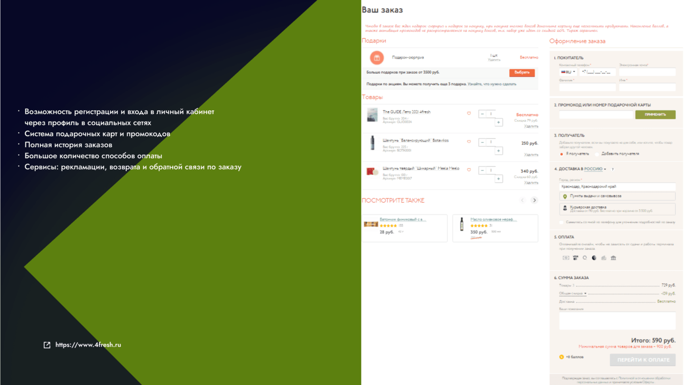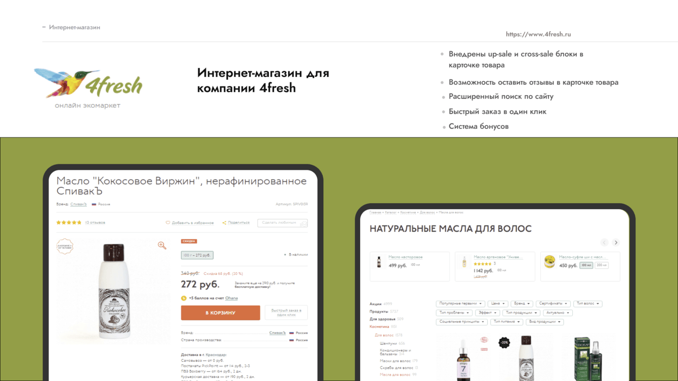 Разработать эко-маркет "под ключ" для компании 4fresh