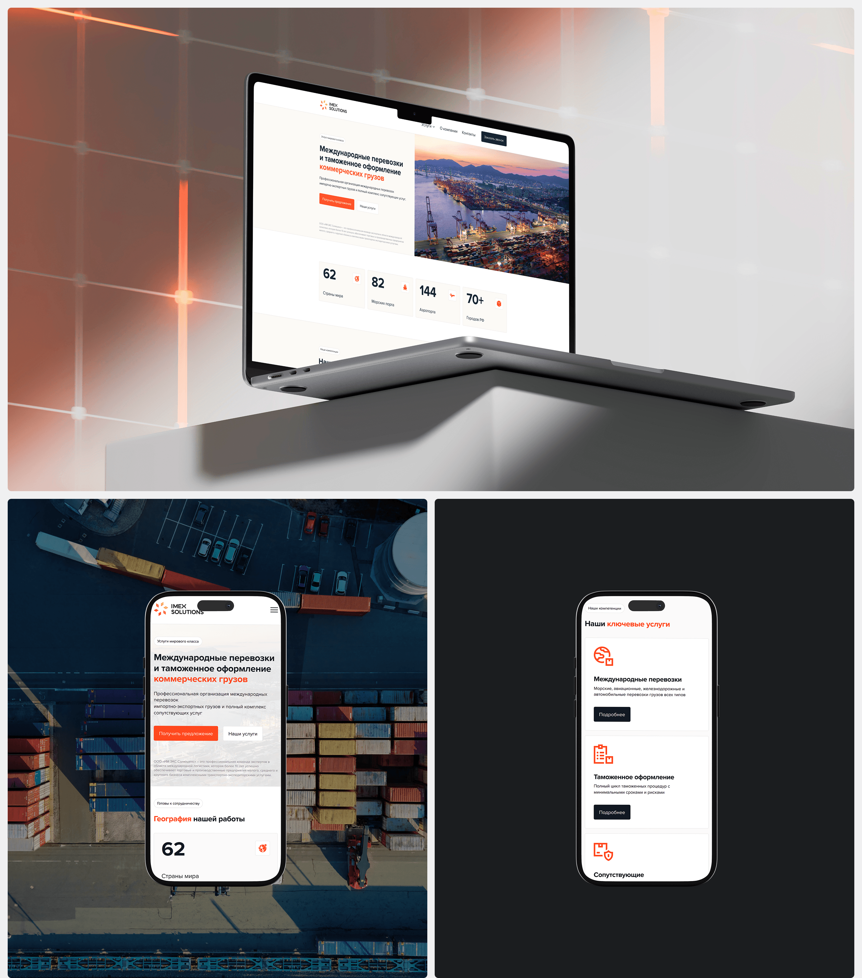 Компания ООО «ИМ ЭКС Солюшенс», специализирующаяся на международных перевозках и таможенном оформлении коммерческих грузов, обратилась с запросом на создание современного корпоративного сайта.