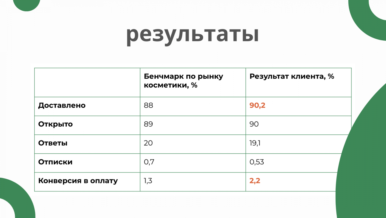 Почти все показатели оказались выше бенчмарков, стандартных для сферы: