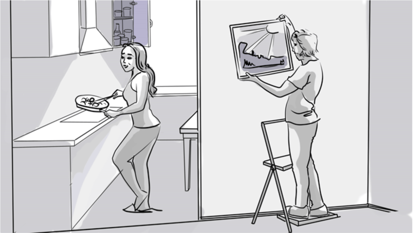 - клиент поставил условие, чтобы мы использовали готовую идею другого агентства, в которой один персонаж произносил "Ай!", а второй "Ти Эл Ви". При этом нам надо было придумать сцены из жизни семьи, где восклицание "Ай" звучало без негативной коннотации.