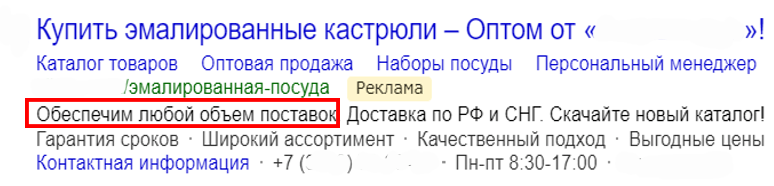 - Выгода. Усилили объявления выгодами, которые получает оптовый покупатель. Например, любой объём поставок.