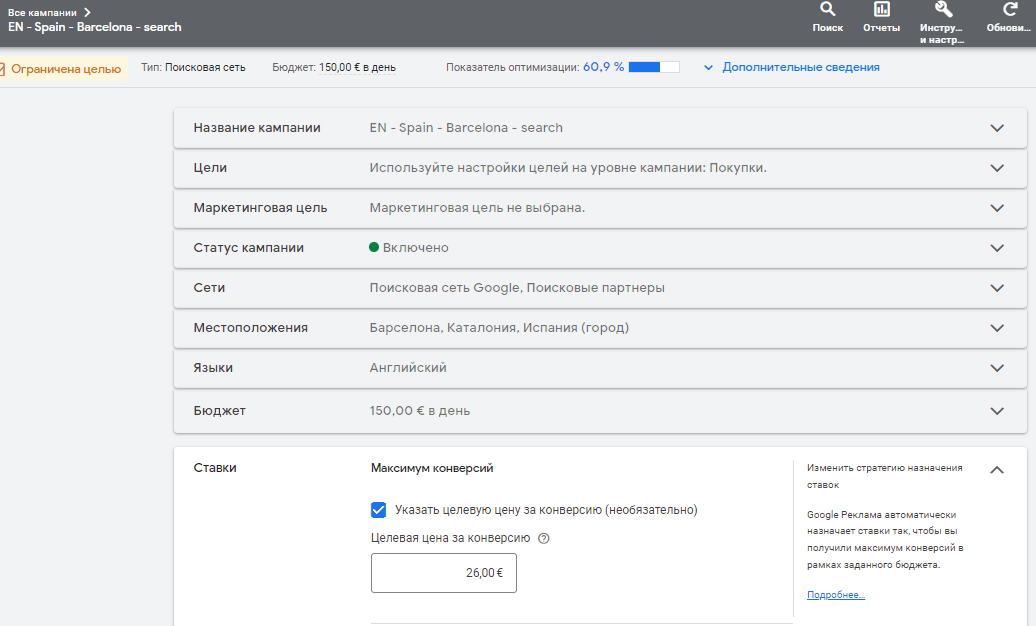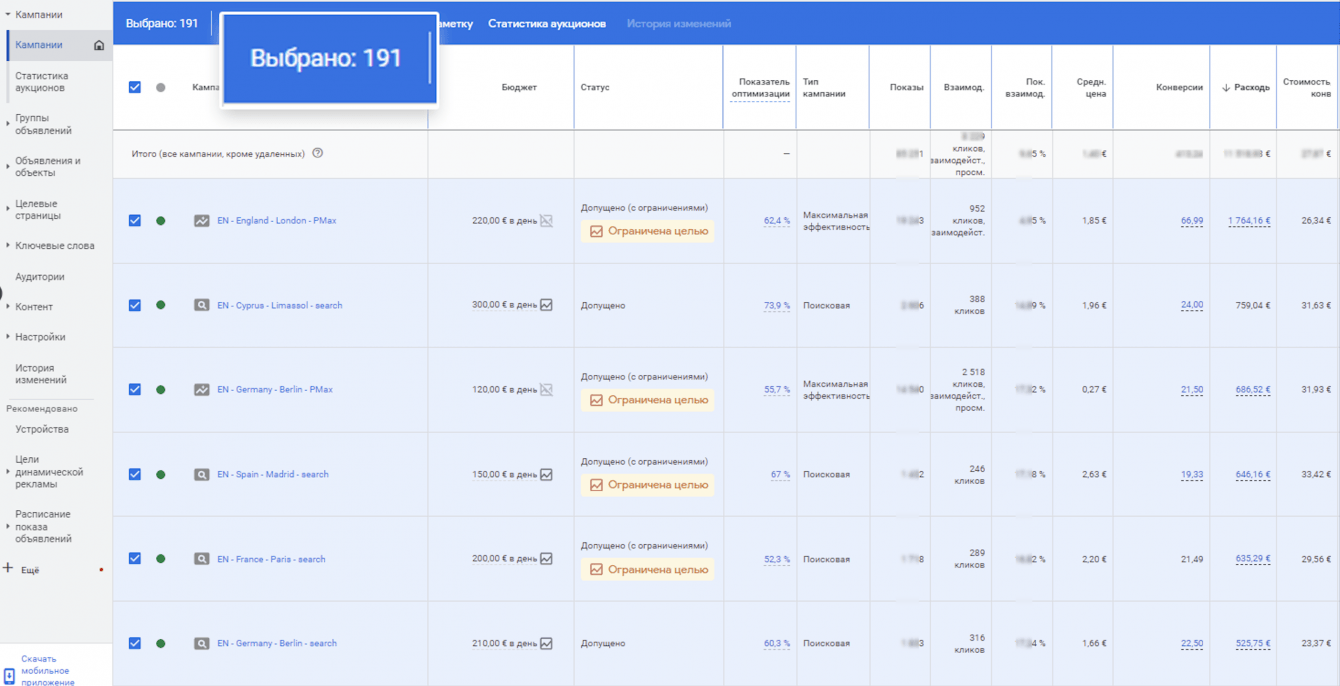 - В первую очередь кампании со стоимостью конверсии за 3 месяца ниже 25 евро.