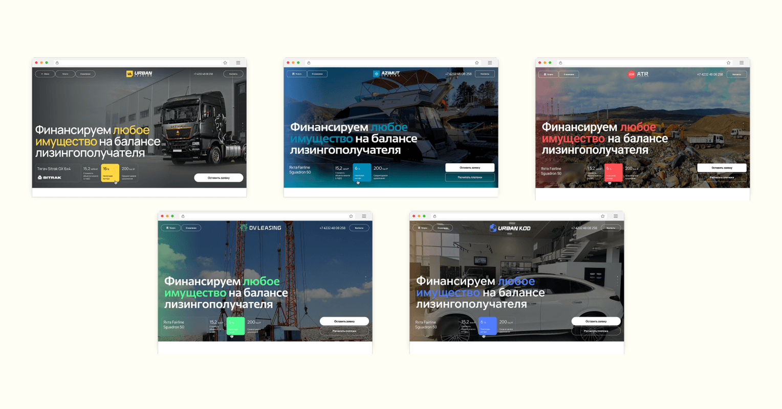 - Подбор контента, типографики и цветовой палитры, которые работают на широкий спектр активов (от грузовой техники до яхт)
