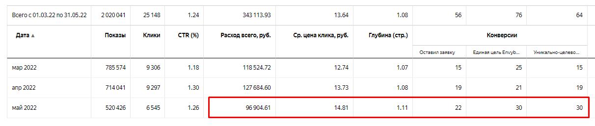 Собственник бизнеса обратился с настроенной и стабильно работающей рекламной кампанией, не устраивала цена лида. В среднем, при бюджете 120 000 - 130 000 рублей, получали 50-60 заявок в месяц, цена заявки варьировала от 2200 до 2800 рублей.