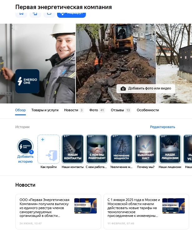 Для укрепления присутствия в экосистеме Яндекса мы оптимизировали карточку компании в Яндекс Бизнесе: