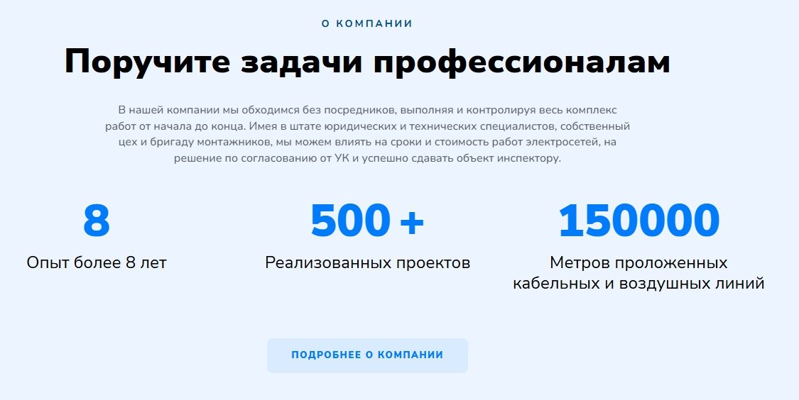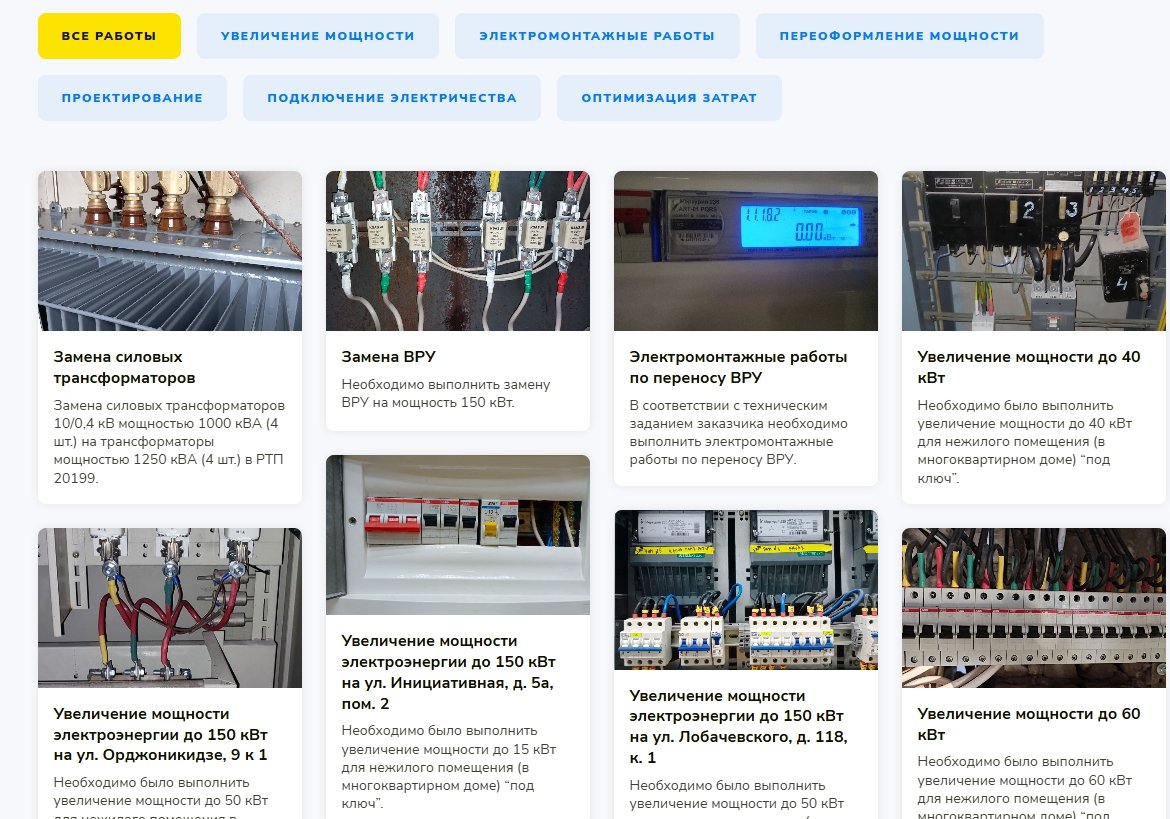 Они позволили собирать трафик по геозависимым запросам («проектирование энергосистем в Екатеринбурге», «строительство подстанций в Казани» и т.п.), а также продемонстрировать опыт компании в конкретных областях России.