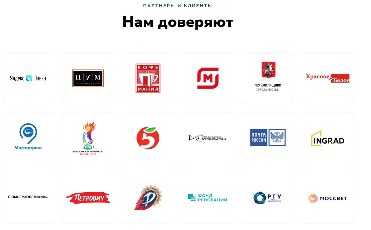 В дополнение к кейсам мы разместили отзывы реальных клиентов и логотипы крупных партнёров, что усилило восприятие бренда как надежного и опытного подрядчика.