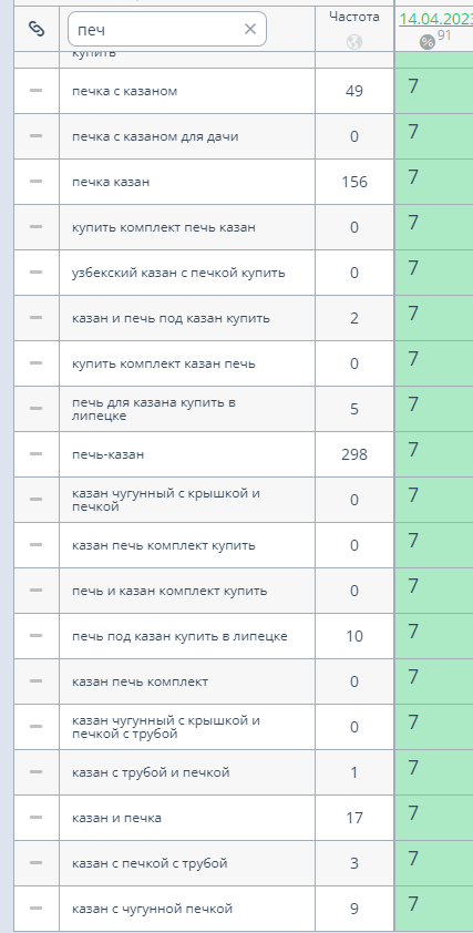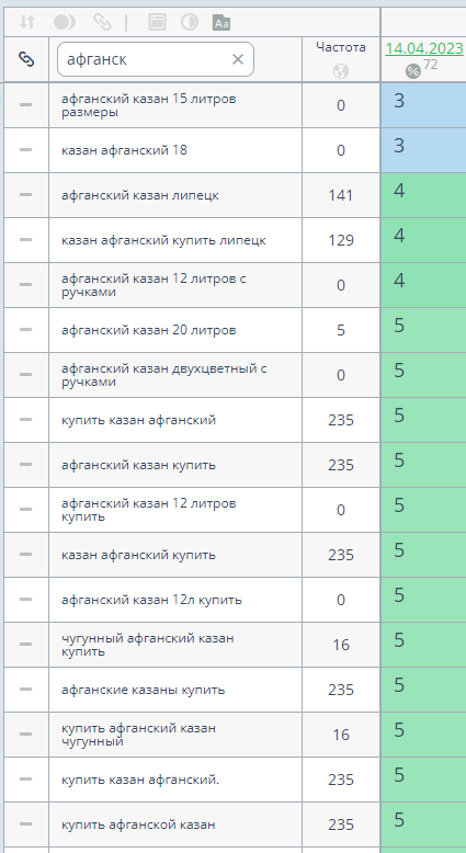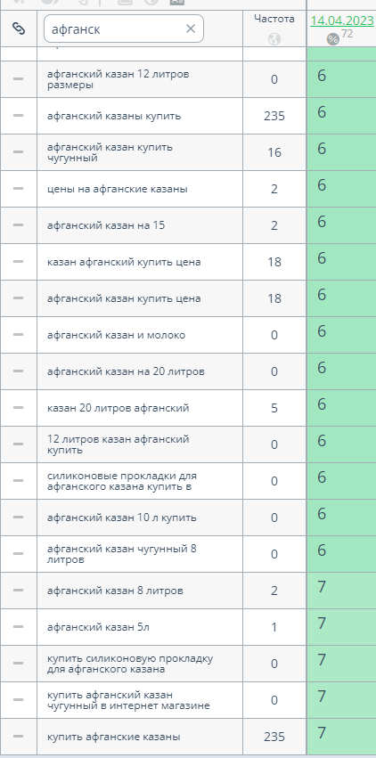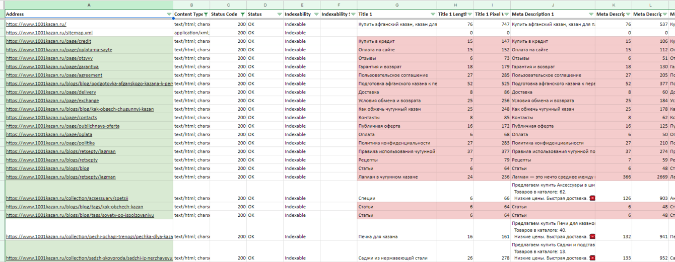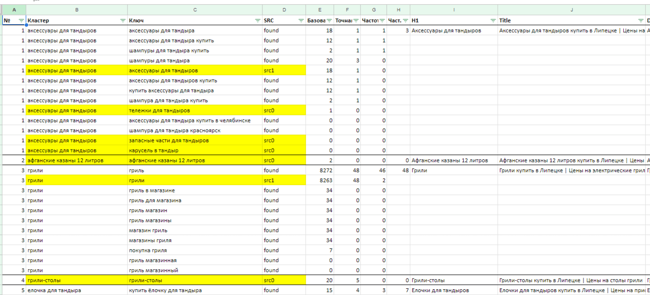 Далее вся собранная актуальная семантика по товарной нише "Казаны" была распределена по соответствующим категориям согласно анализу поисковых запросов и тематики выдачи Яндекса и Google.