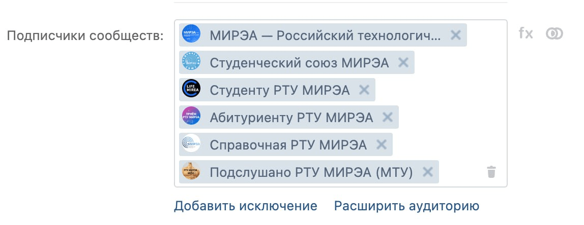 Настроили таргетинг. Таргетировались на подписчиков сообществ вузов: