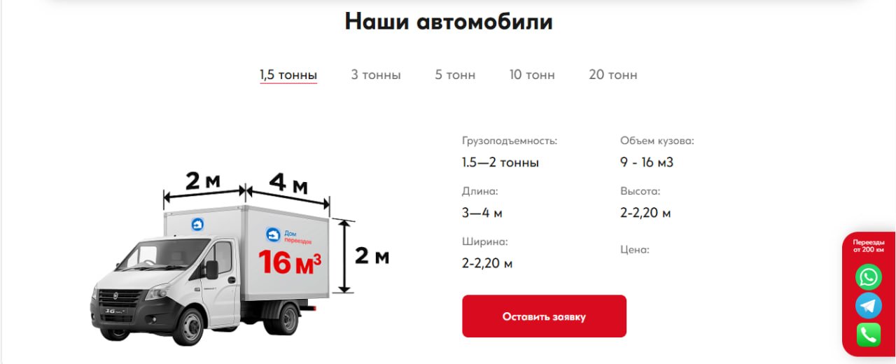 Дополнительно реализованы карточки автомобилей с характеристиками и блок «Как это работает», пошагово объясняющий процесс переезда.