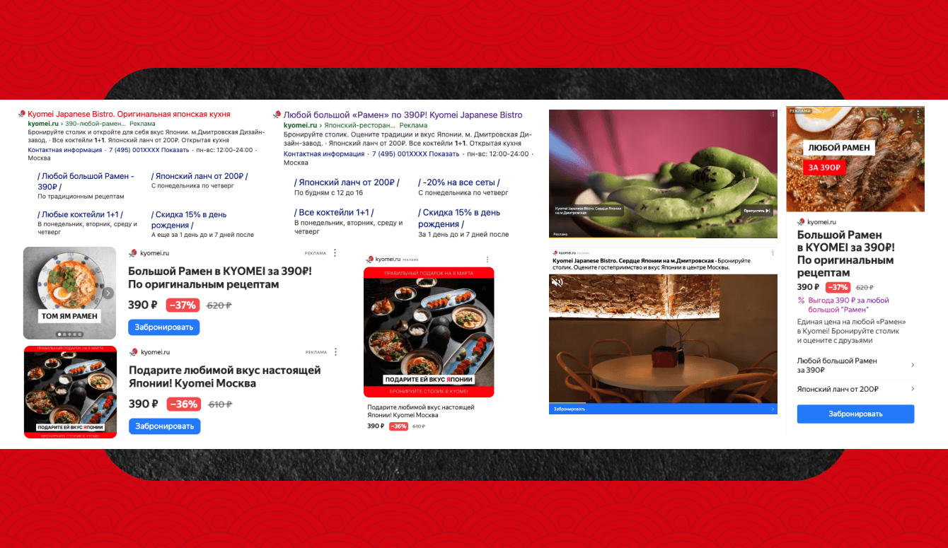 Рекламная кампания по основным запросам и интересам в радиусе 2 км от Kyomei «привела» новых посетителей (в основном – офисных работников), которые, как оказалось, даже не знали о заведении.
