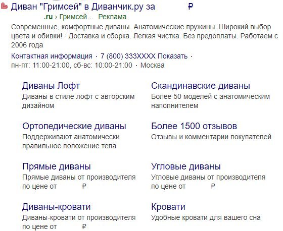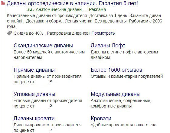 Ретаргетинг на поиске и в сети. Запускали классический сетевой ретаргетинг, но получили с него минимальное количество заказов и с высоким СРО. Это было ожидаемо, так как в мебельной сфере данный тип кампаний зачастую показывает низкую эффективность, но хотели протестировать все варианты.