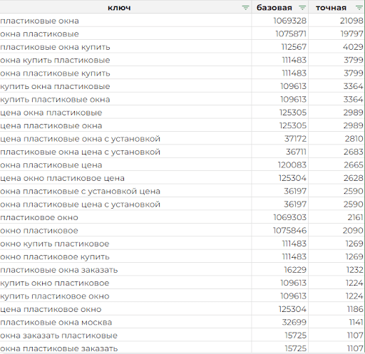 - Сформирован полный список целевых запросов под каждую категорию товаров;