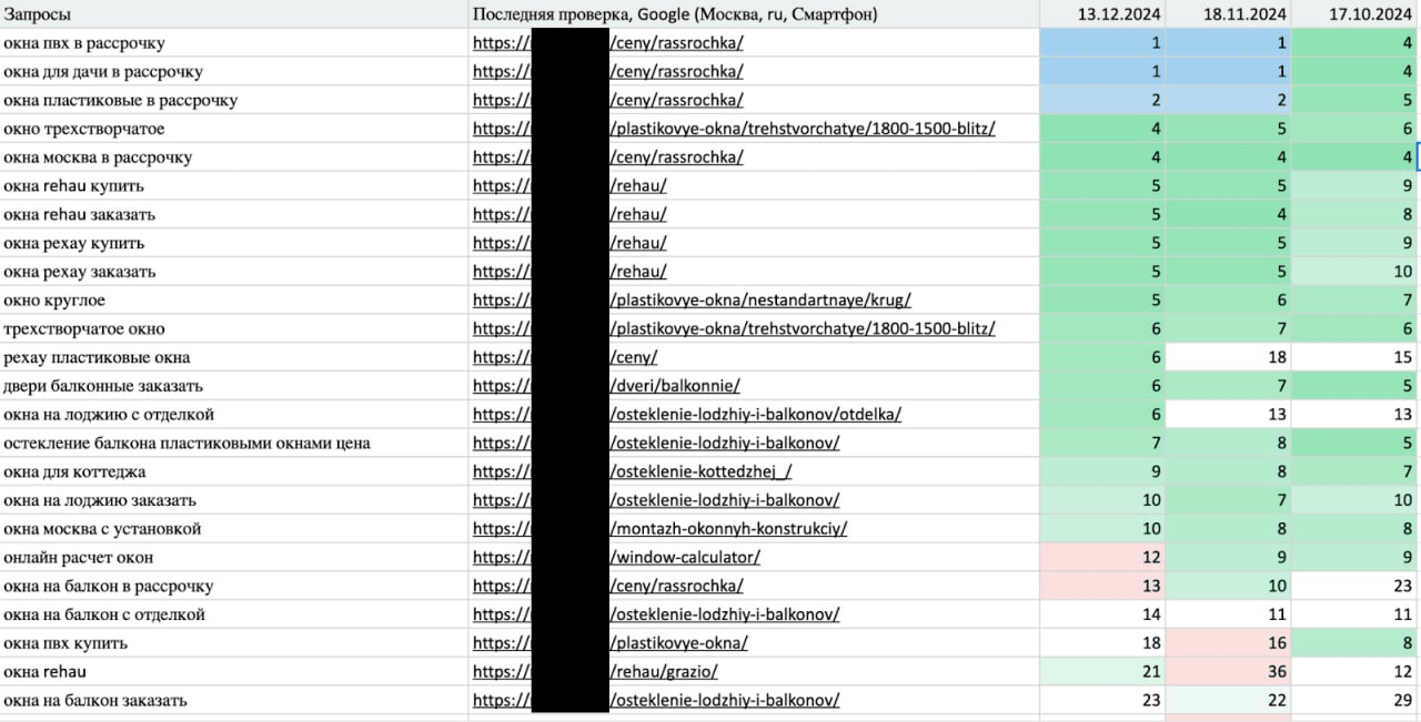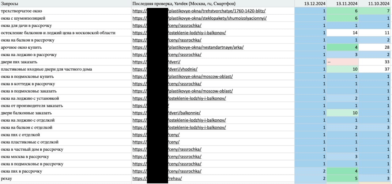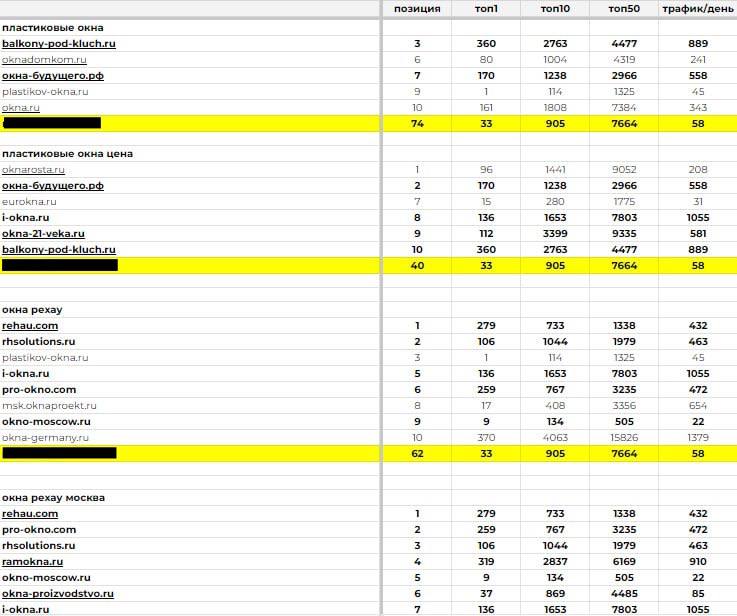 Сначала мы зафиксировали позиции клиента и конкурентов в поисковой выдаче: