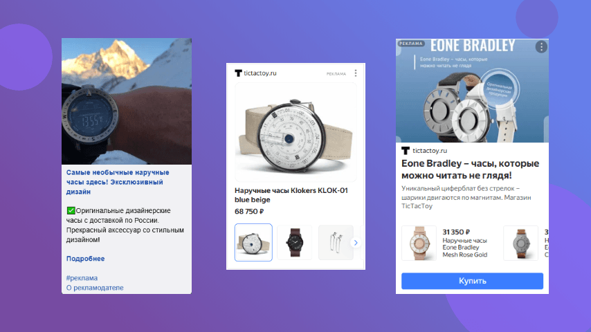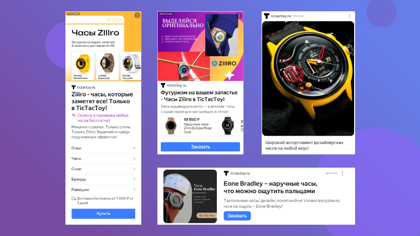 Поскольку ассортимент довольно широкий и целевая аудитория под каждый ряд брендов отличается - было решено сегментировать кампании. К примеру, несколько брендов для более молодых людей, которые хотят выделяться, ценят индивидуальность и футуризм, ну и по прочим другим признакам. Вот пример таких объявлений: