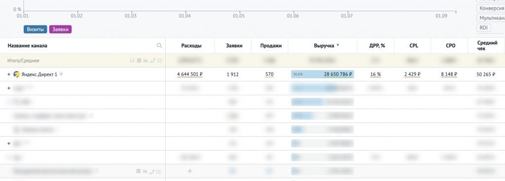 Была установлена сквозная аналитика Roistat, именно поэтому располагаем полной информацией по выручке компании.